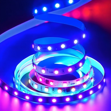 Секој LED модул на RGB светлосна лента обично вклучува три LED чипови: црвена (R), зелена (G) и сина (б). Со прилагодување на осветленоста на овие три бои, може да се мешаат различни бои. Осветленоста на секоја боја обично може да се прилагоди помеѓу 0 и 255, што значи дека има 256 различни нивоа на осветленост за секоја боја.