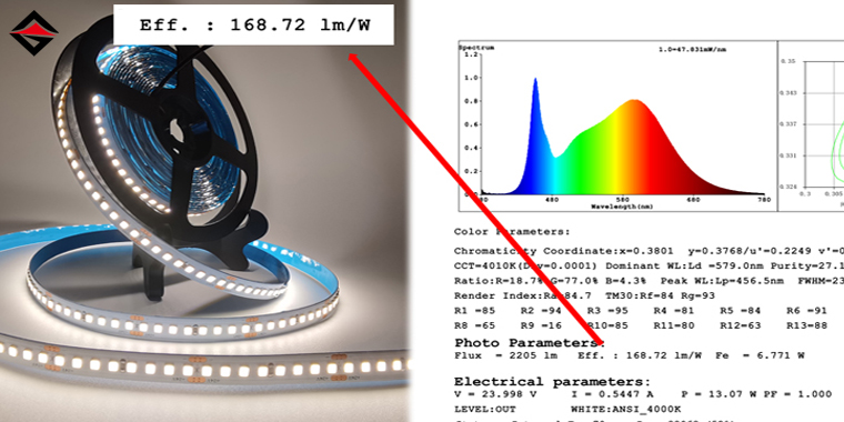ЛЕР -лентите се состојат од повеќе LED мониста. Светлечката ефикасност на монистра одредува колку лумени на светлечки флукс можат да се генерираат под одредена моќност. Општо земено, LED мониста со подобар квалитет може да предизвика поголема луменска вредност под истата моќност, односно тие имаат поголема светлечка ефикасност. Ако светлата на лентата усвои мониста со висока-осветлена ефикасност, може да се добие релативно висока вредност на луменот дури и со помала моќност. Спротивно на тоа, ако светлечката ефикасност на ламбите е мала, дури и ако моќноста е релативно висока, вредноста на луменот може да не биде идеална.